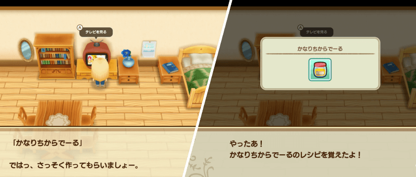 材料は「ちからでーる」と「青い草」、調理道具は「ミキサー」が必要みたいです。