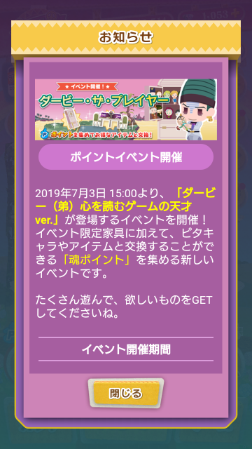 今回はいつものイベントカードとは違い、限定家具の他に**『魂ポイント』を集めて賞品と交換できる新要素が追加**されています。