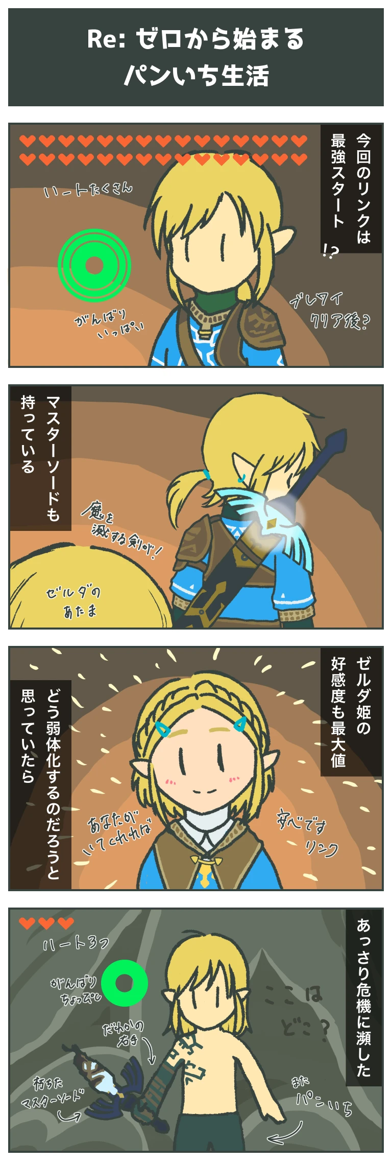 これからどうすれば良いのか……、ゼルダ姫は無事なのか……、リンクの新たな冒険が始まります。